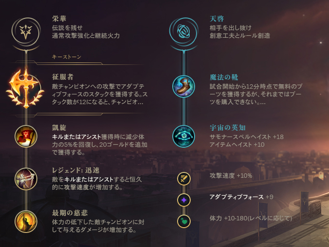 征服者一択で良いです!栄華の3段目と、サブルーンは好みで変えてもokです。