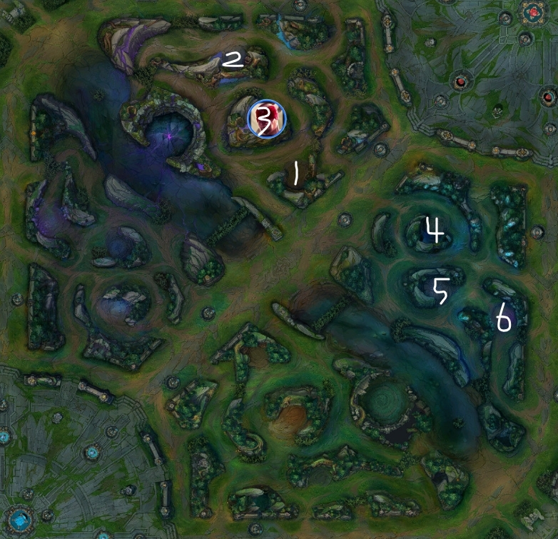 相手のジャングラーに有利が取れる場合は鳥から狩り始めてファーム量を増やしても良いです。フルクリア速度が速いのも良いのところなので、赤バフスタートして取りから始めるか、青より先に蛙を狩るかで少しファームの効率を良くしても良いですね。
