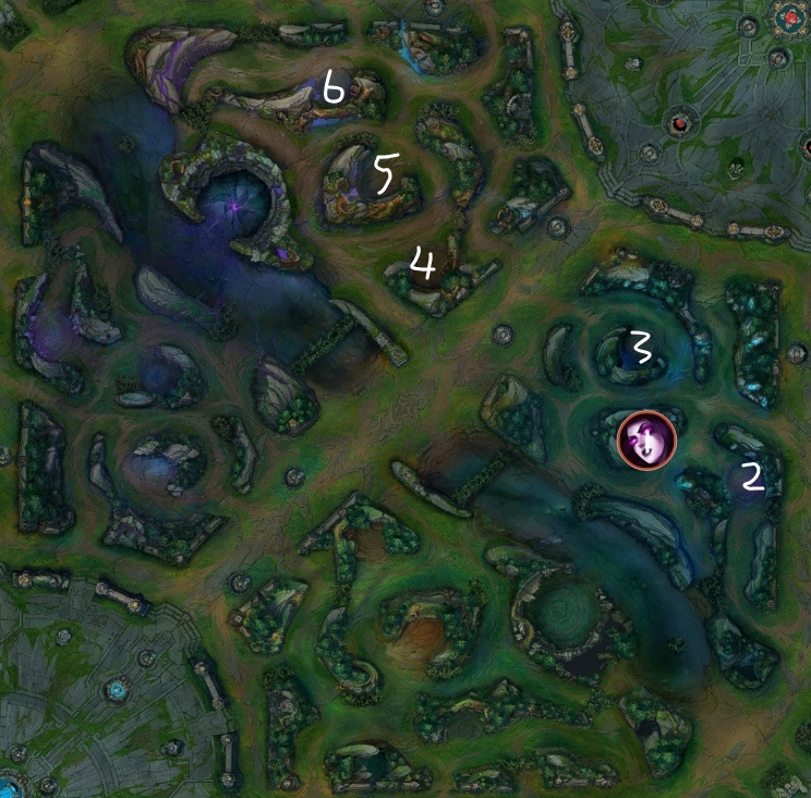 青側と同じく基本のフルクリアです。基本的には青バフスタートがおすすめですが、レーンにCCが無い時や序盤に弱い時は狼から初めてファーム効率の良いJGルートを選んでも良いです!