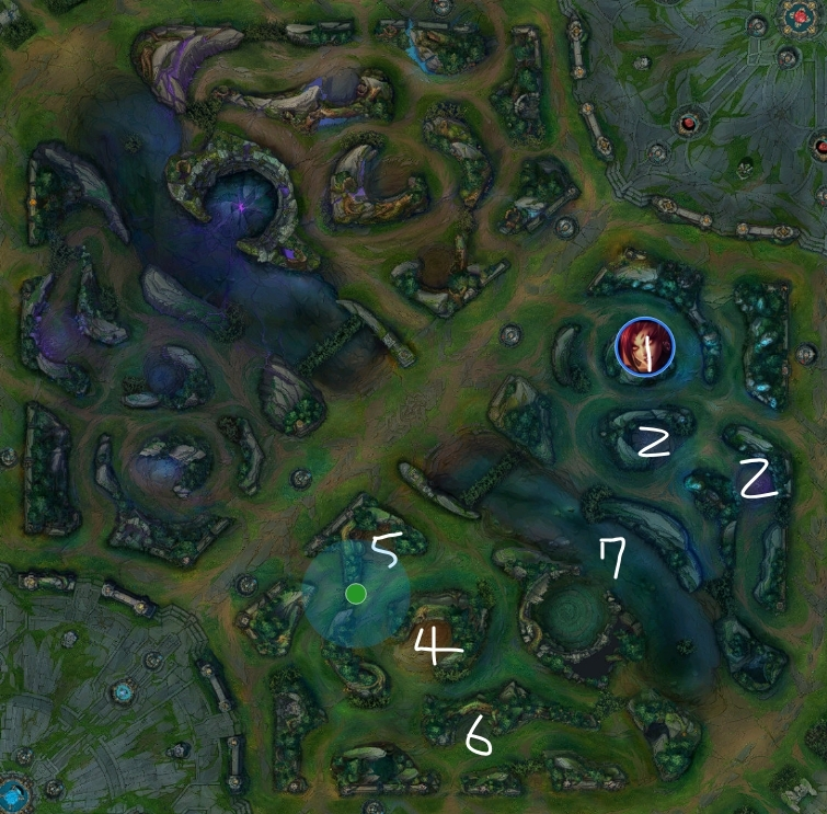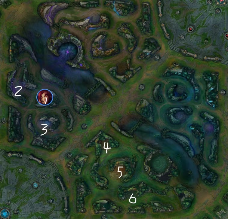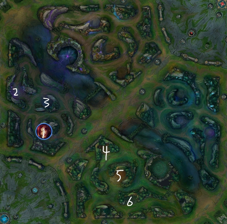 ボットが戦って体力が少ない時や、ガンクが出来そうな時は最後に狩る蛙をスキップしてガンクしても良い。